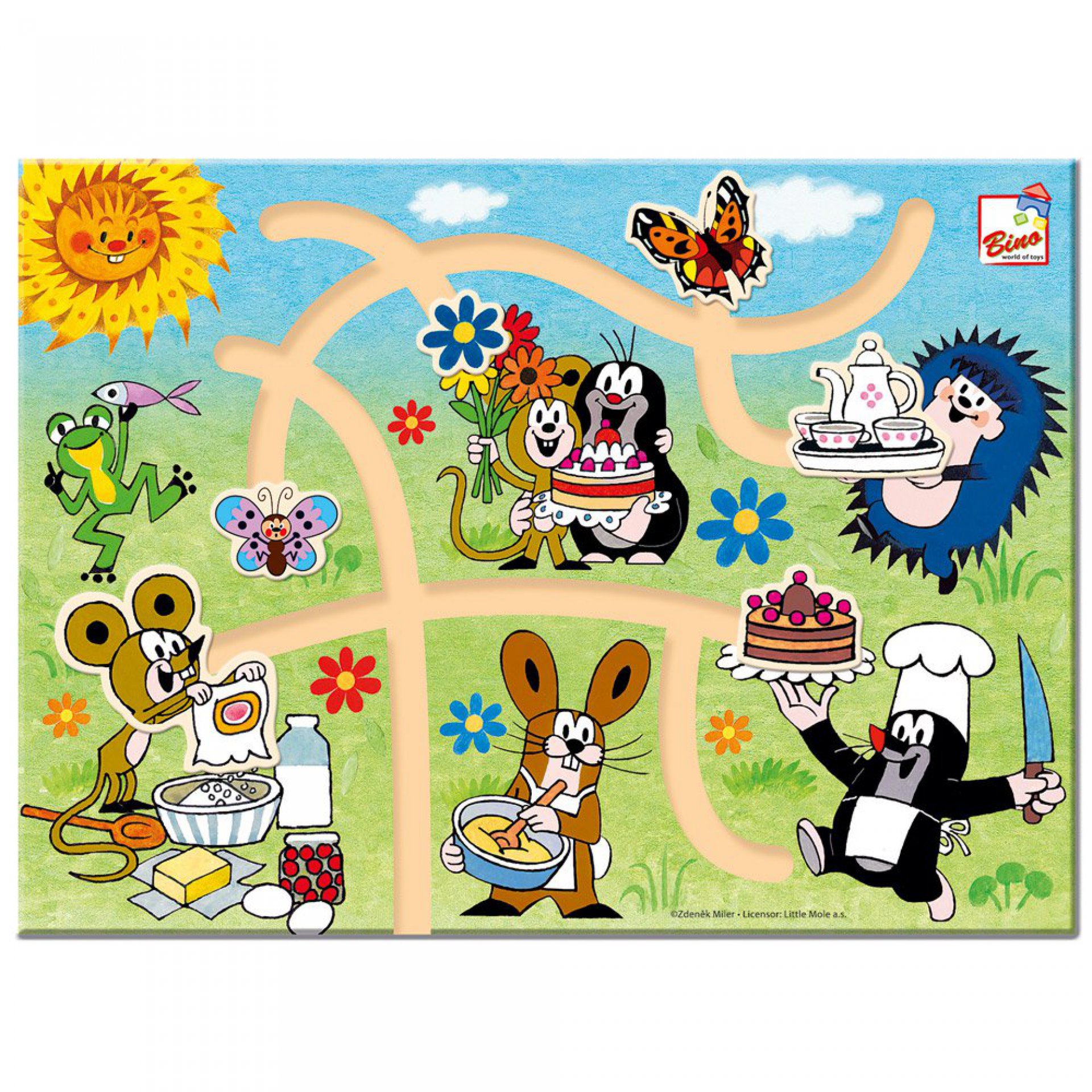 Najdi správnou cestu - Krtek, materiál překližka, rozměr 30×22×1,4/2 cm. Pro děti od 24 měsíců.
