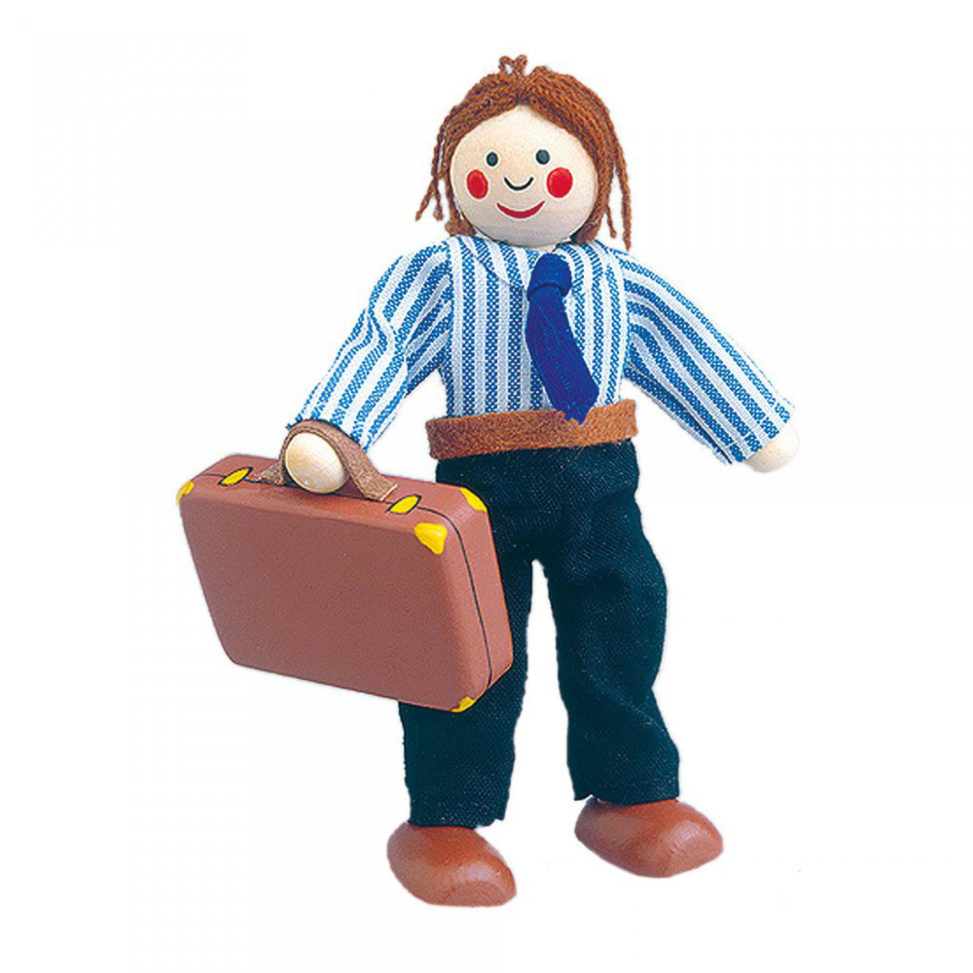 Tatínek Václav s kufříkem - dřevěná figurka vhodná do našich domečků pro panenky, doporučujeme doplnit dalšími "rodinnými" figurkami. Pohyblivé ruce i nohy, výška: 13 cm.