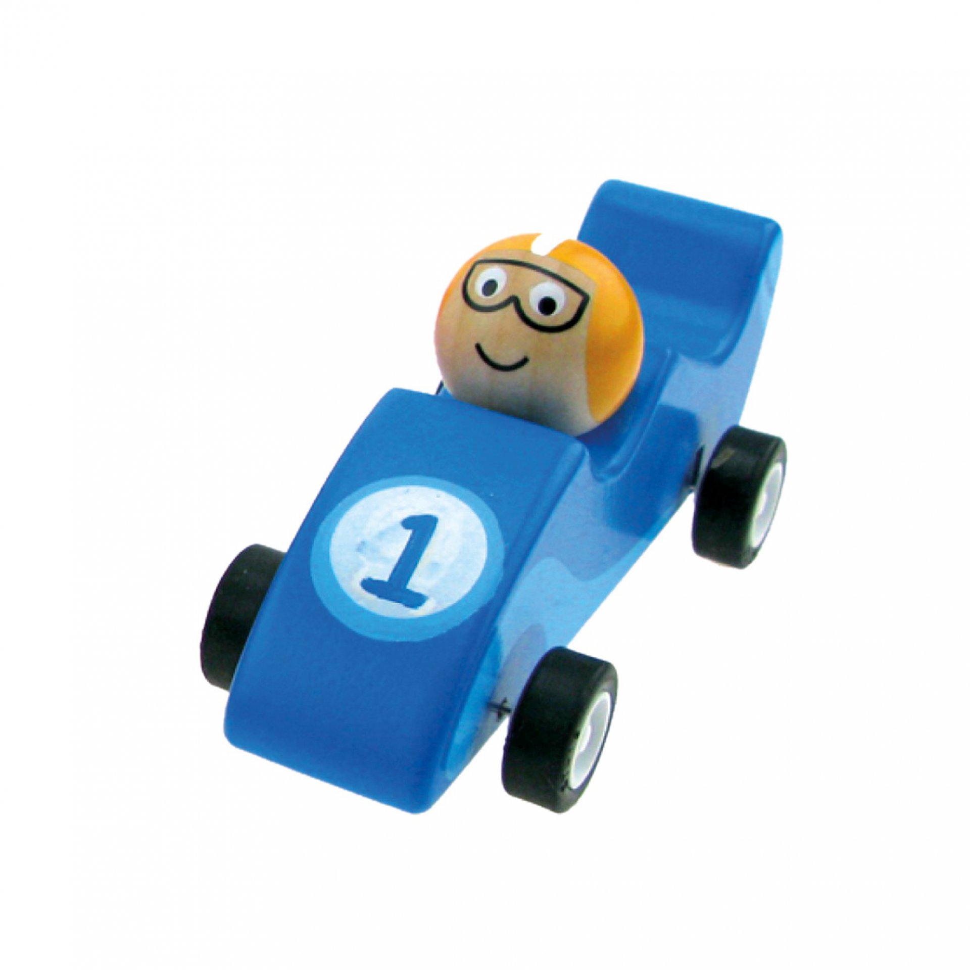 Každý chlapeček má rád auto. A co teprve, když je to přímo formule? Náš usměvavý a odvážný řidič se právě chystá na startovní čáru. Dřevěná, modrá formule, s ohnivým designem na kapotě je vybavena kvalitním setrvačníkem.