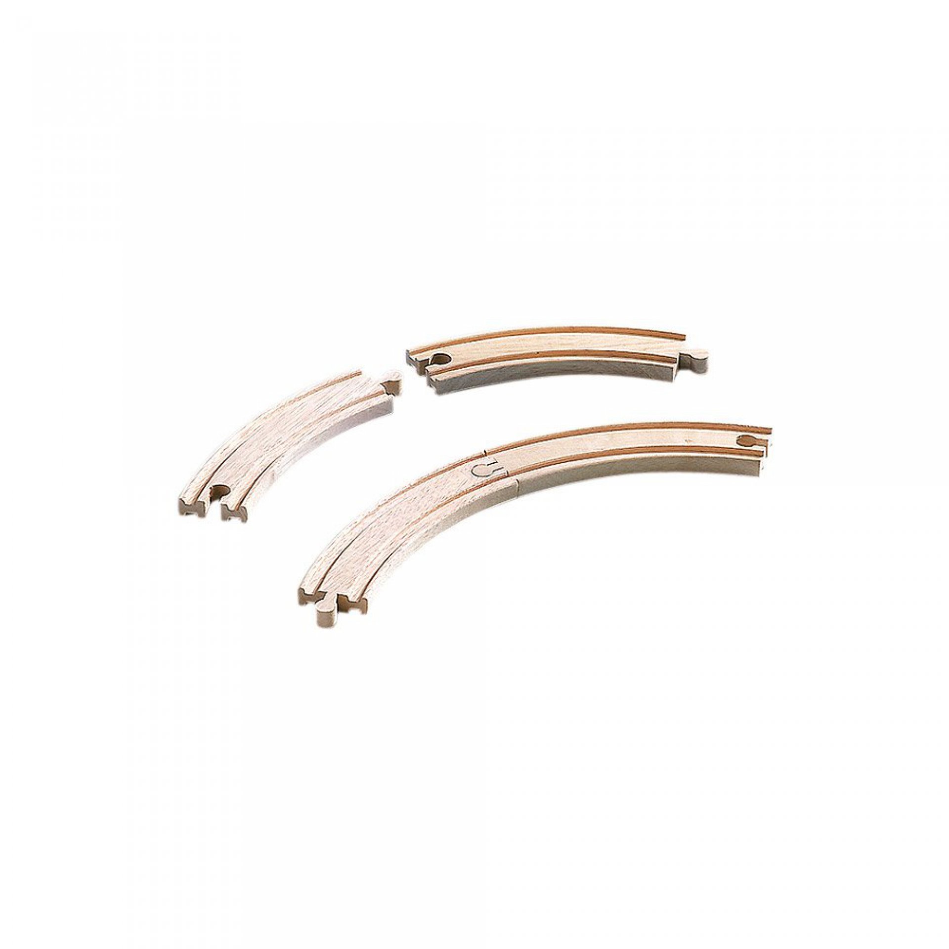 Dřevěné koleje k vláčkodráze, kulaté, rozměry 64x4x1,2 cm, 4 kusy. Doporučujeme kombinovat s dalšími prvky této populární stavebnice.