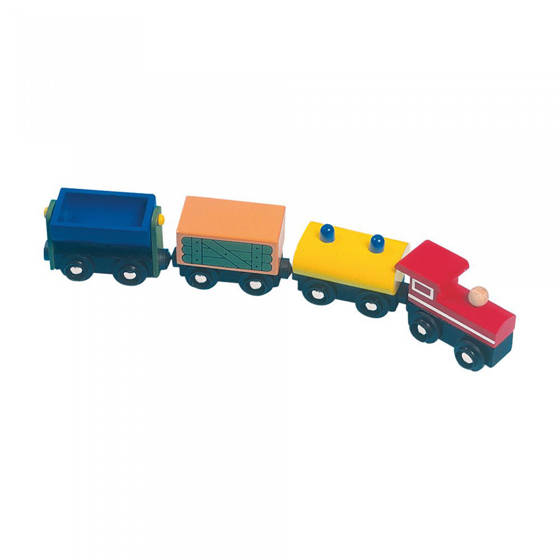 Dřevěný nákladní vláček kompatibilní s vláčkodráhou, dlouhý 30 cm, jednotlivé části spojené magnetem.