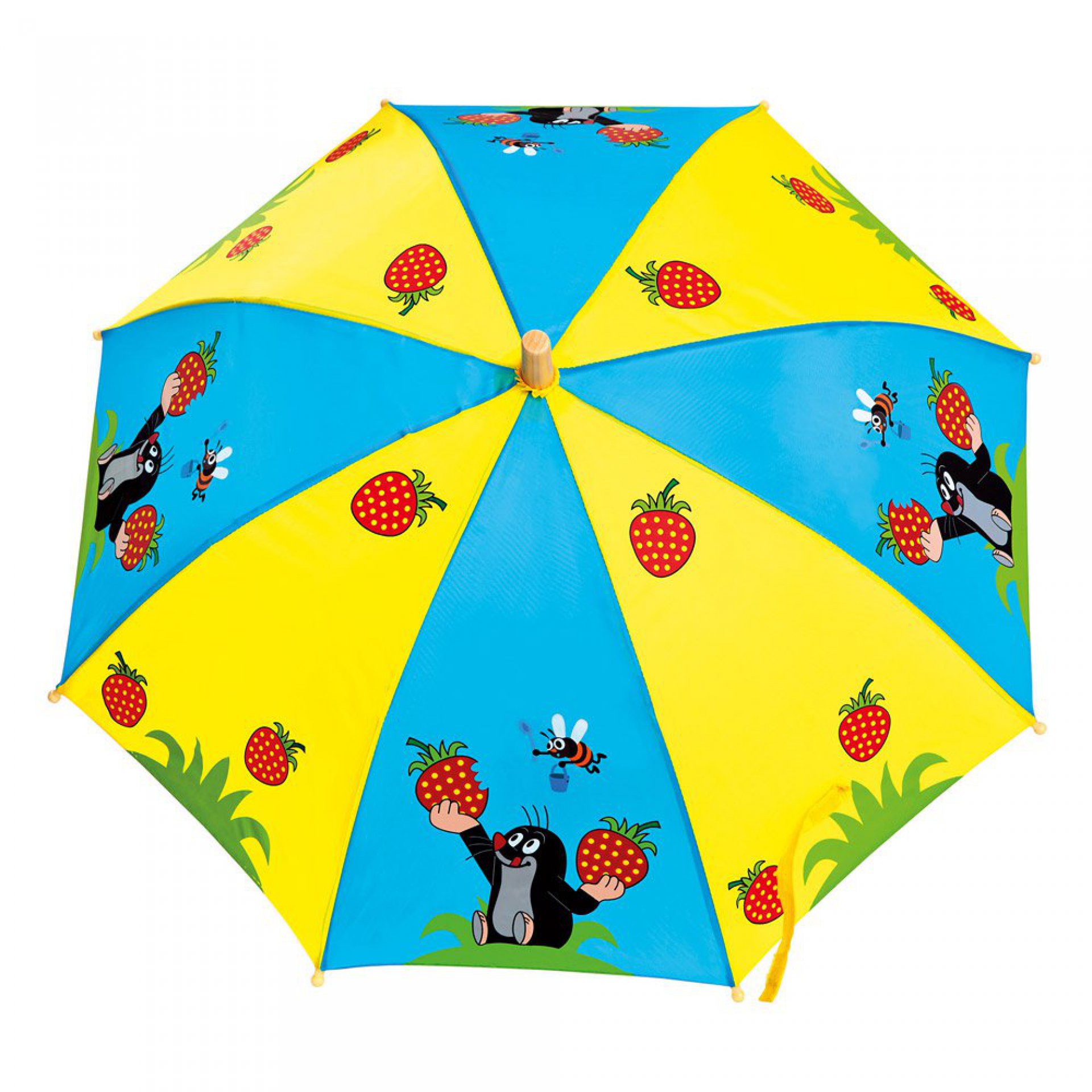 Každý letní deštík i pořádný liják bude pro Vaše dítě náramnou zábavou. Žlutomodrý deštník s obrázky Krtka a sladkých jahůdek vybízí k procházce mezi kapkami.