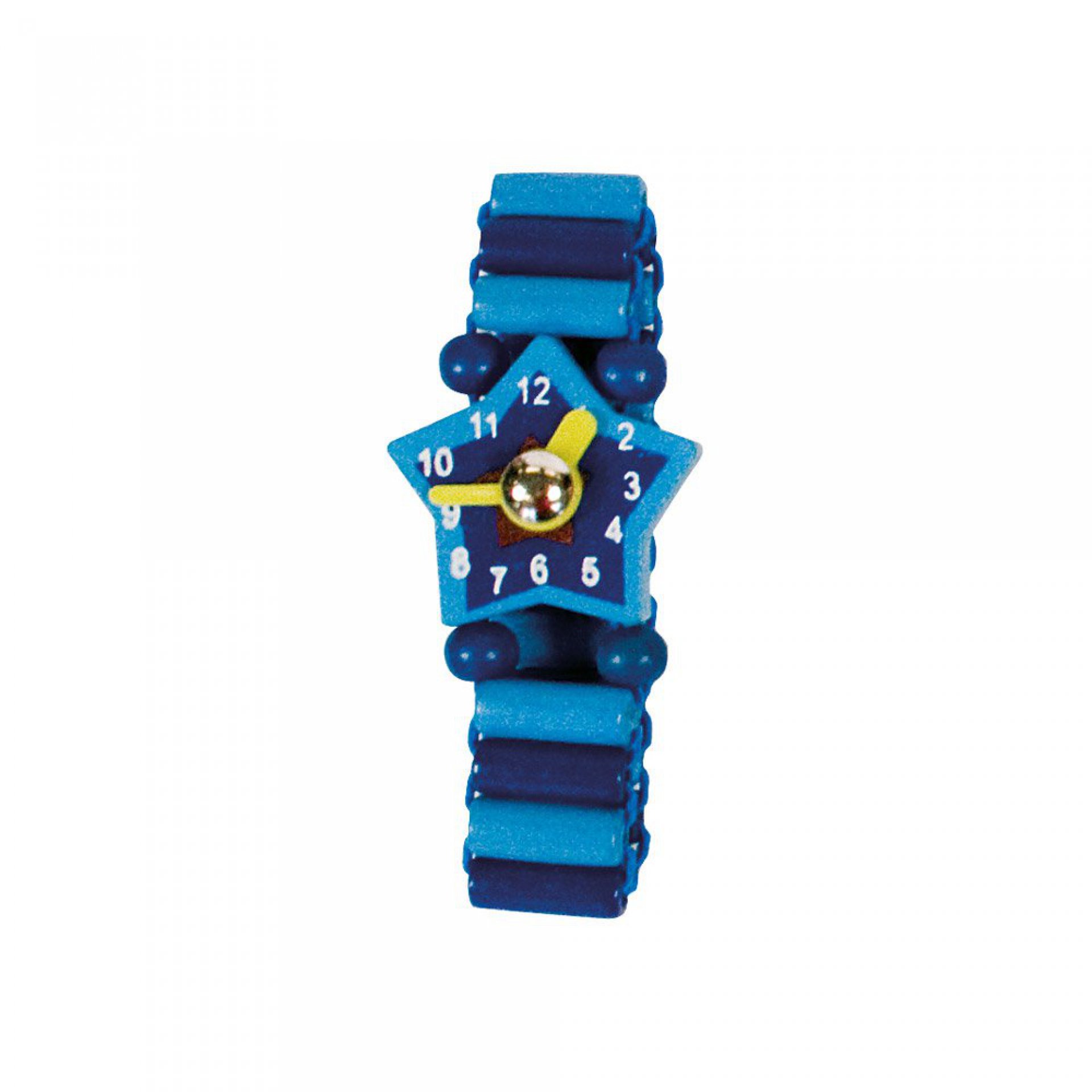 Dřevěné hodinky modré, navlékací s ciferníkem ve tvaru hvězdy. Rozměry: 6x2x2,5 cm