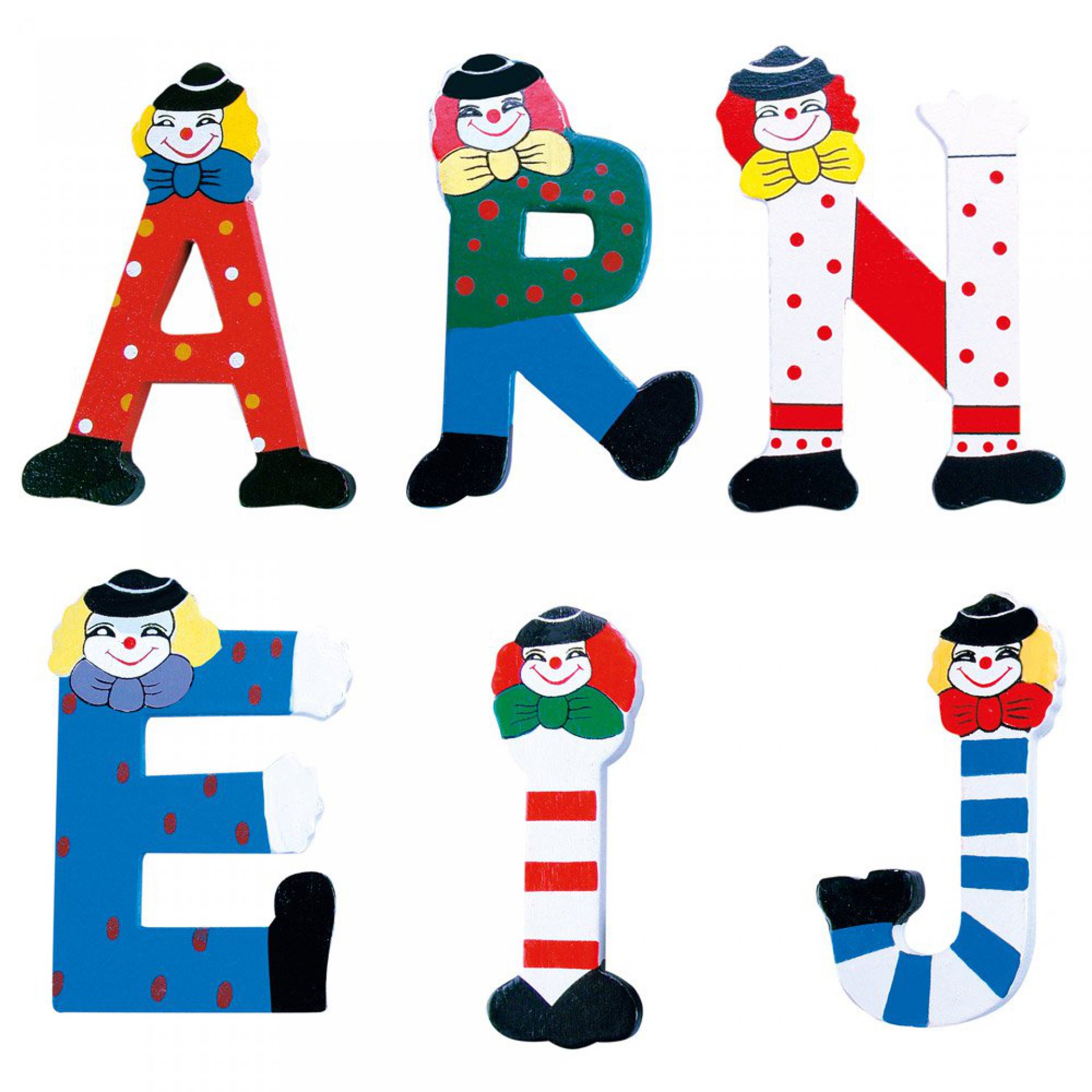 Vyzdobte si dětský pokojíček nápisem z veselých barevných písmenek s klauny. Dřevěná písmena snadno přilepíte třeba na dveře nebo skříň. Písmenko X s rozesmátým klaunem.