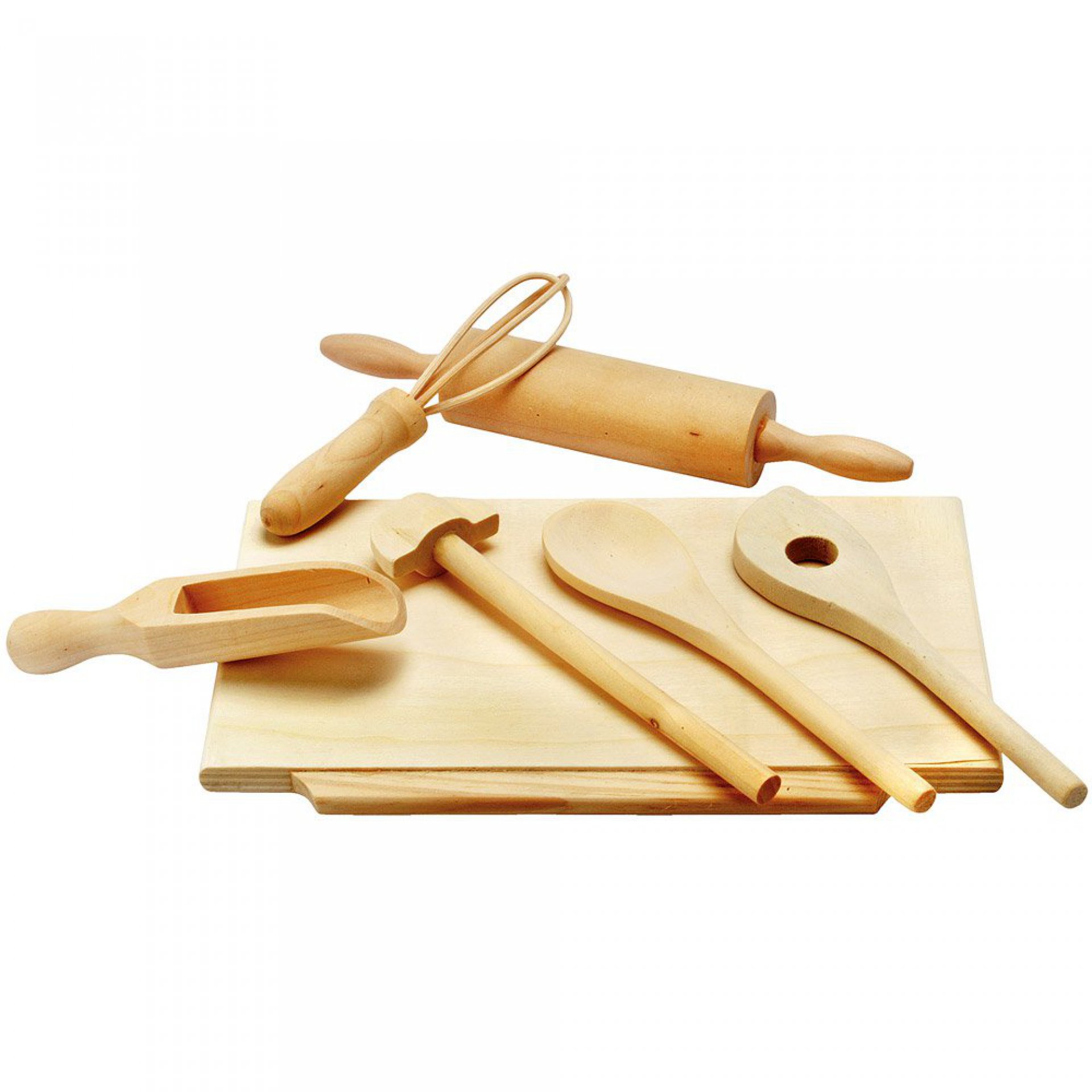 Praktická pomůcka malých pekařek, pekařů, cukrářek a cukrářů, souprava náčiní na pečení - 7 dílů. Rozměry: 24x16x5 cm.