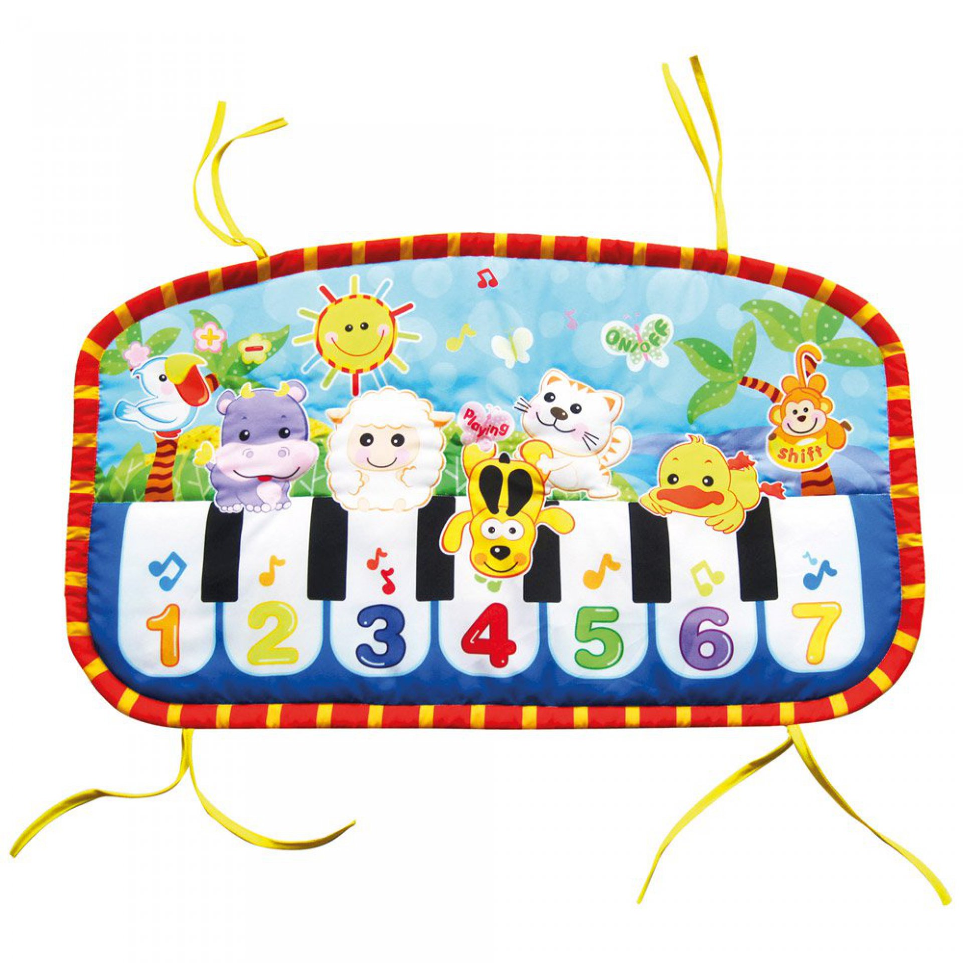 Dotyková hrající podložka pro malé objevitele a milovníky zvuků a veselých obrázků. Příjemný měkký materiál a barevné provedení s obrázky zvířátek a číslicemi ocení každý zvídavý nezbeda. Ideální hračka pro rozvoj senzomotorického vnímání.