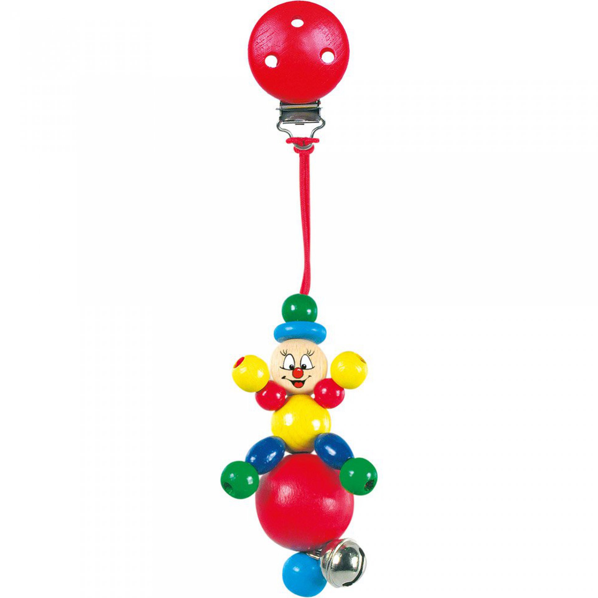 Veselý společník na první cesty v kočárku. Barevná dřevěná figurka má atesty, barvy jsou nezávadné.