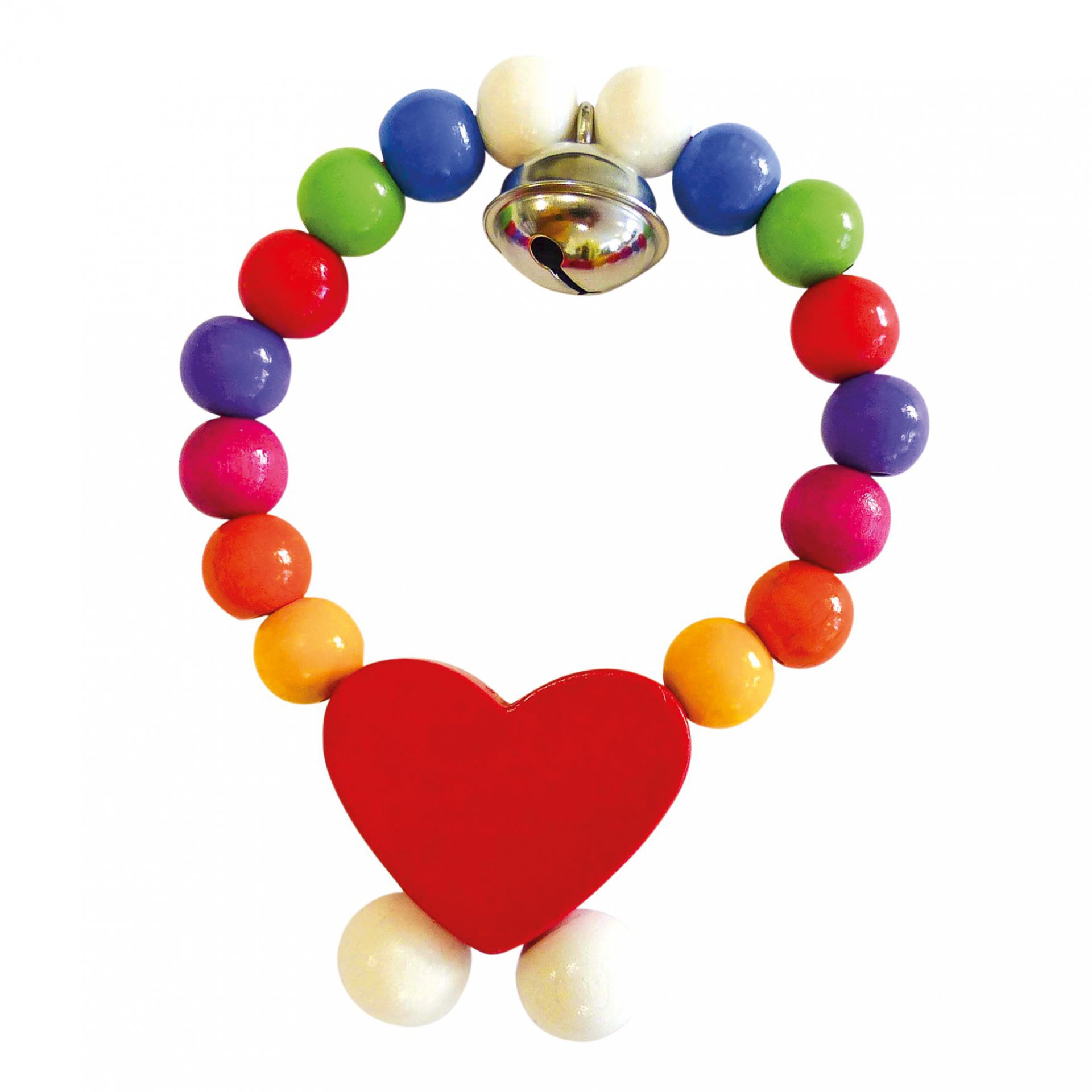 I vaše miminko si rychle zamiluje roztomilý kroužek do ruky se srdíčkem. Snadno si může osahat pestrobarevné kuličky, srdíčko i cinkající rolničku. Dřevěná hračka pro nejmenší, která je příjemná na dotek a poskytne zábavu a nové podnětů.