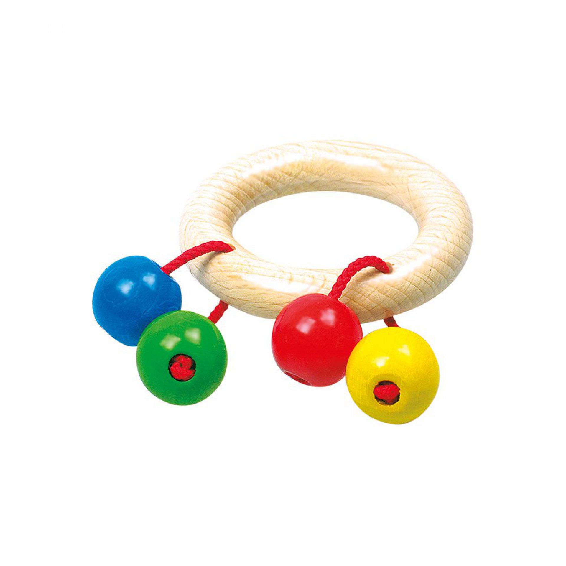 První dřevěná hračka našich nejmenších. Dřevěný kroužek do ruky s barevnými korálky. Tato dřevěná hračka podporuje posilování svalů na rukou, procvičování koordinace očí a rukou a tím přispívá k rozvoji motorické schopnosti.