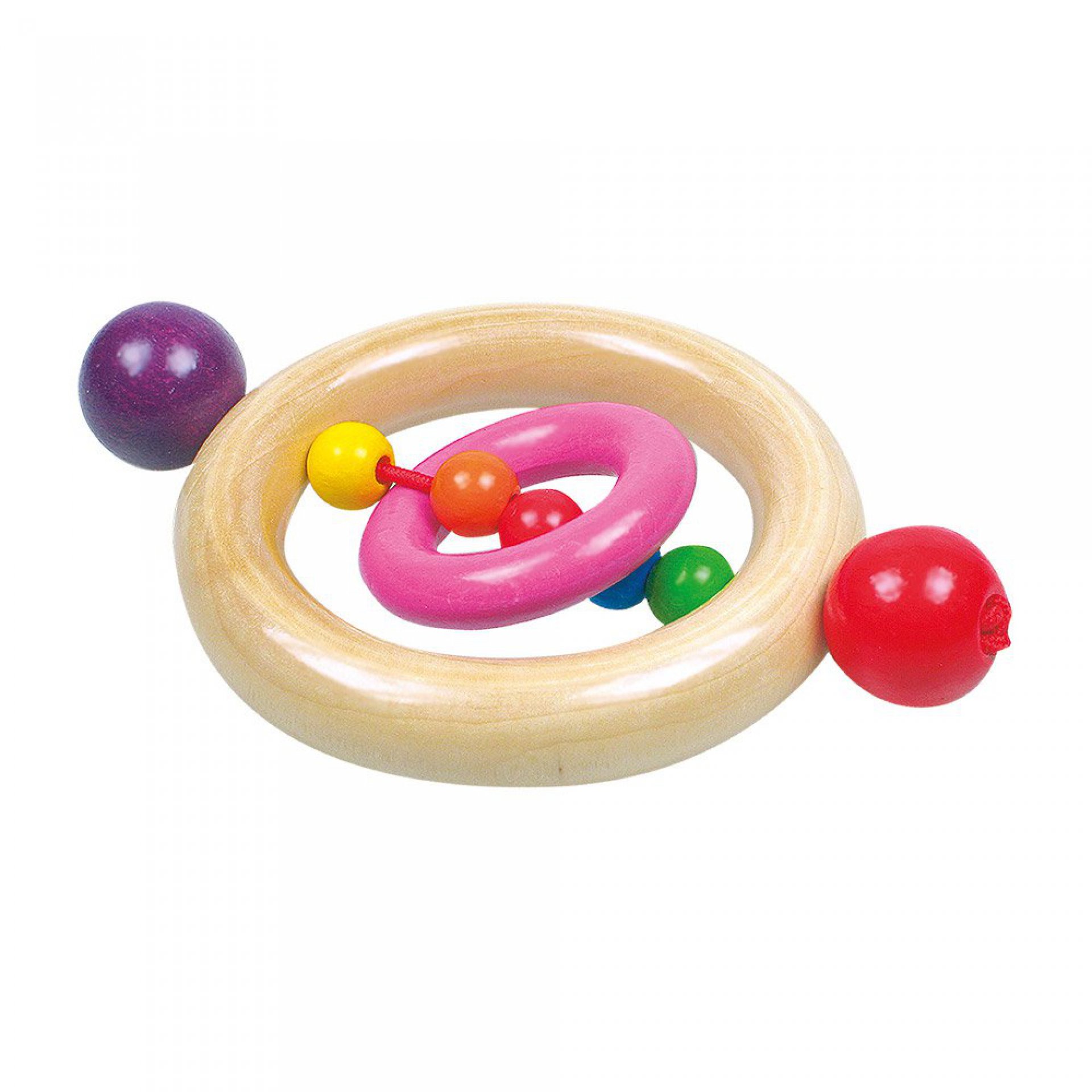 Tato dřevěná hračka podporuje posilování svalů na rukou, procvičování koordinace očí a rukou a tím přispívá k rozvoji motorické schopnosti. Na čištění hračky stačí vlhký hadřík. Průměr 12 cm