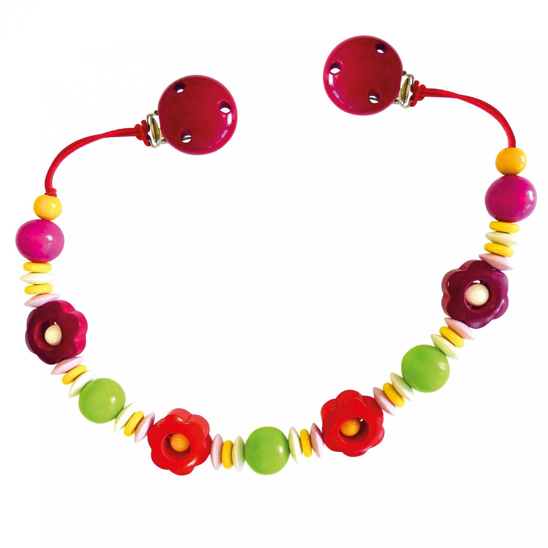 Vyzdobte kočárek vašemu miminku tak, aby ho projížďka v něm bavila a zároveň se učilo novým věcem. Závěsný řetěz do kočárku s kuličkami a dřevěnými kytičkami, bude nejoblíbenějším kouskem vaší výbavičky.