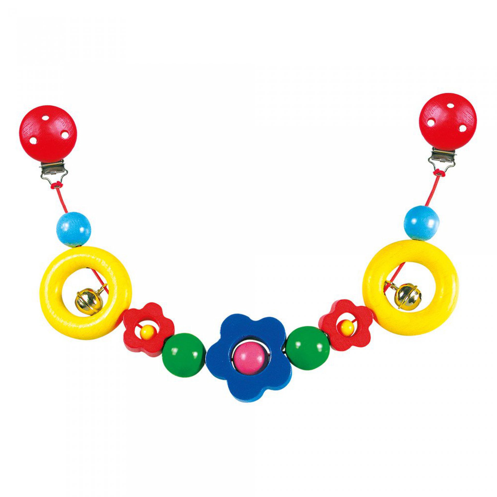 Veselý společník Vašeho nejmenšího na první cesty v kočárku. Řetěz do kočárku má atesty, barvy jsou nezávadné.