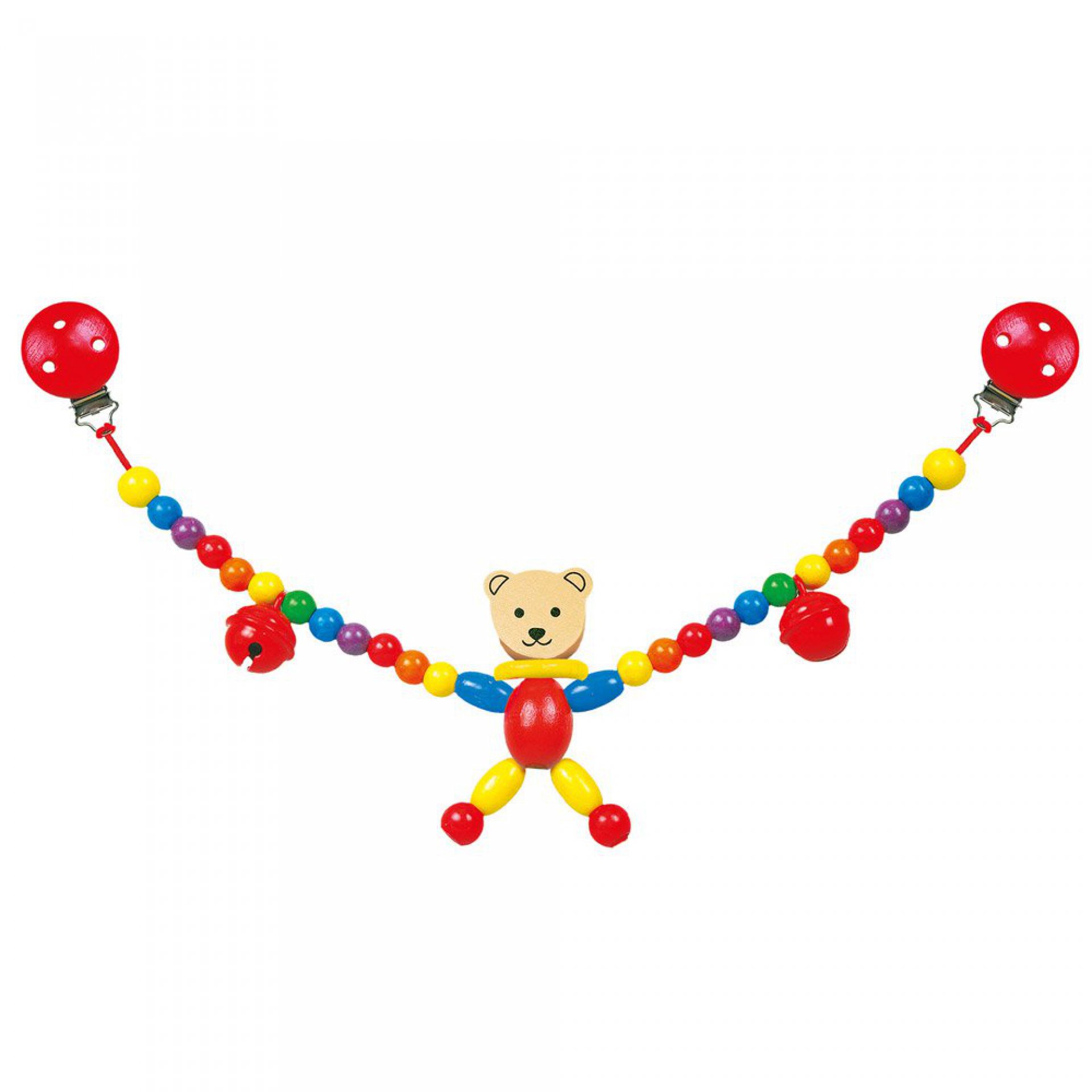 Veselý společník Vašeho nejmenšího na první cesty v kočárku. Řetěz do kočárku má atesty, barvy jsou nezávadné.