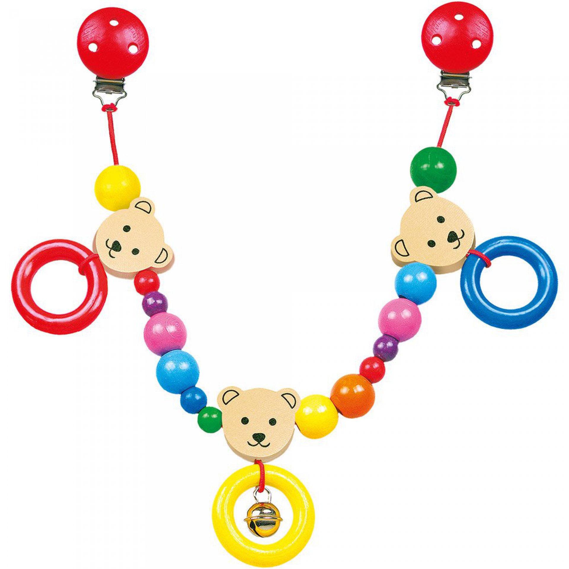 Veselý společník Vašeho nejmenšího na první cesty v kočárku. Řetěz do kočárku má atesty, barvy jsou nezávadné.