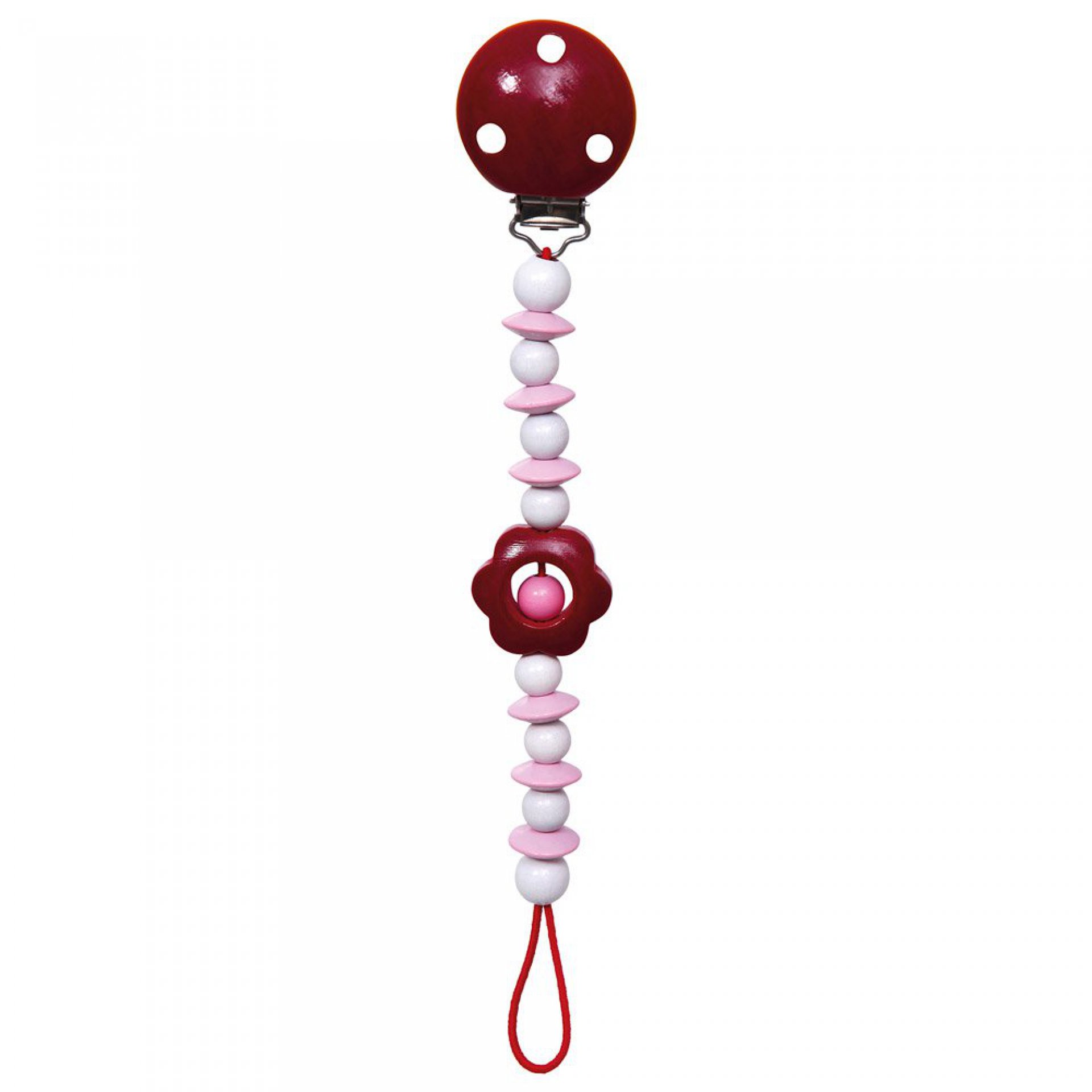 Šňůra na dudlík v dívčím provedení s aplikací kytičky. Délka: 21,5 cm