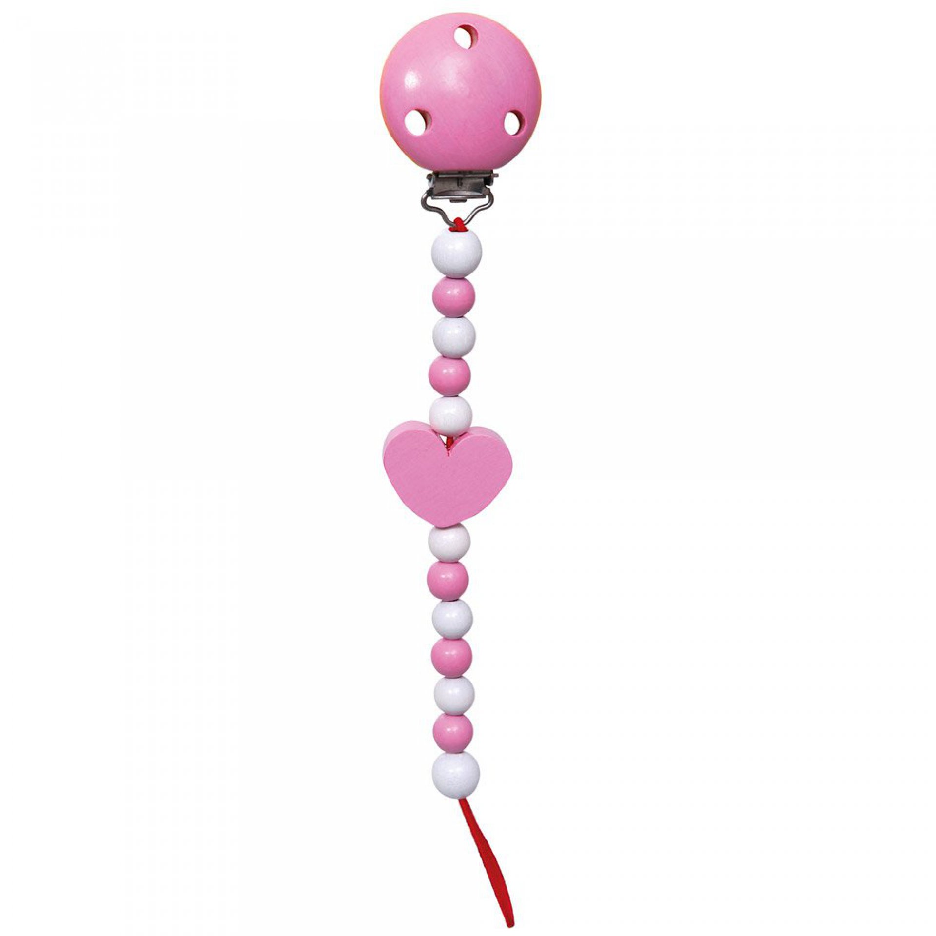 Již žádný dudlík na zemi! Šňůra na dudlík s dřevěnými korálky, v dívčím - růžovém provedení.