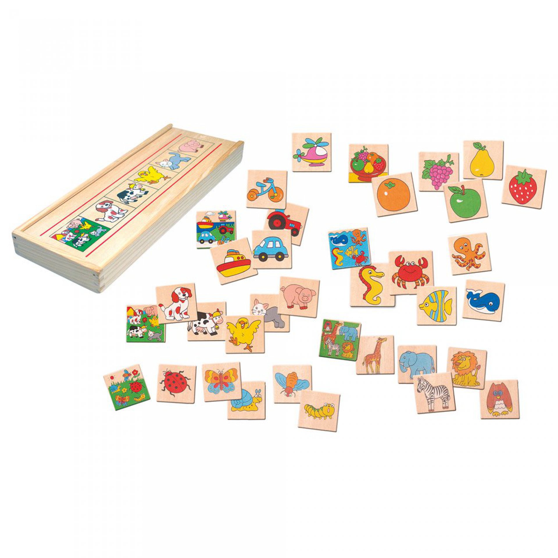 Praktická dřevěná krabička plná barevných obrázků na dřevěných kartičkách. Hra, která díky správnému přiřazování rozvíjí myšlenkovou operaci syntézy a zlepšuje komunikační kompetence dítěte. Zábava, která vzdělává.