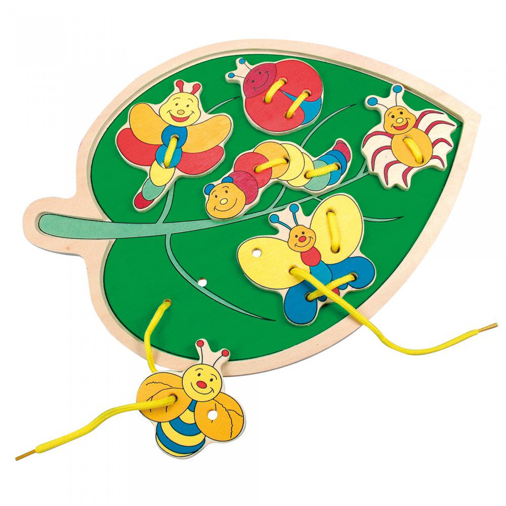 Nezbedné housenky, pavouček a motýlci se sešli na zeleném lístku. Přišívání k lístku má velmi dobrý vliv na dětskou motoriku.