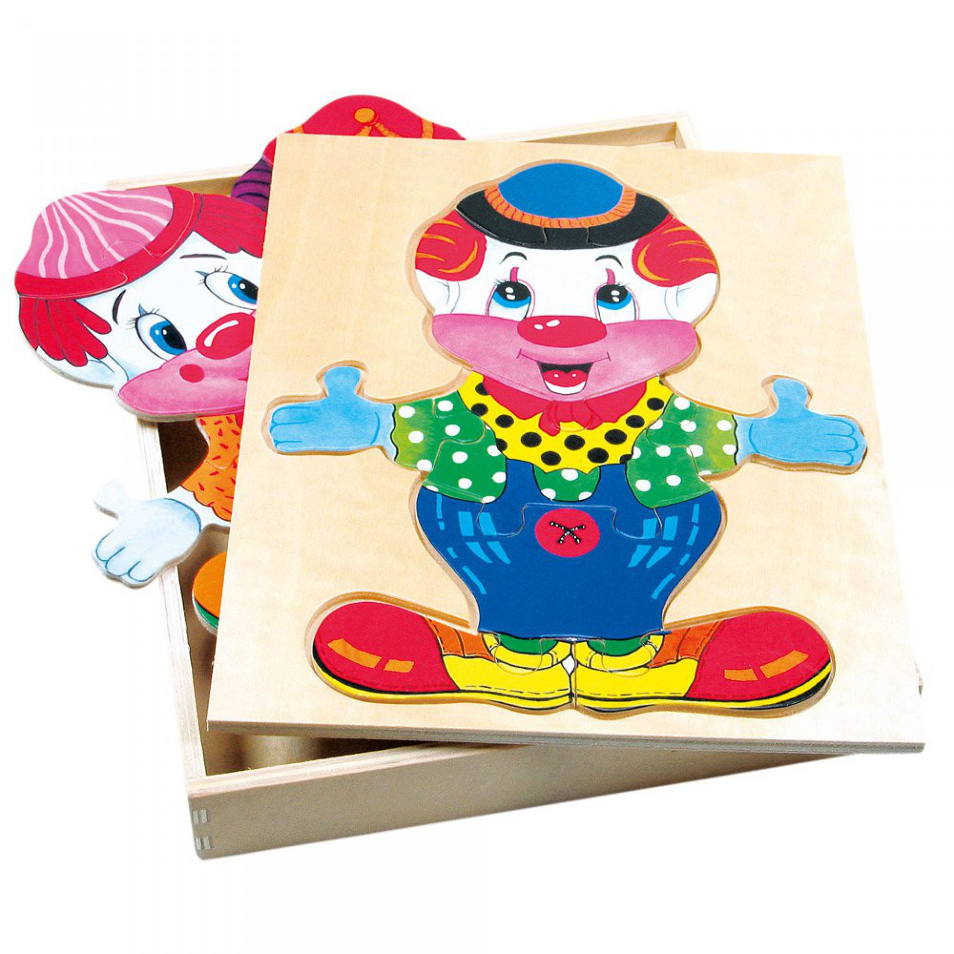 Oblékací puzzle veselého klauna s sebou přinášejí velkou zábavu. U dětí podporuje motorický rozvoj, schopnost soustředit se a rozlišovat barvy.
