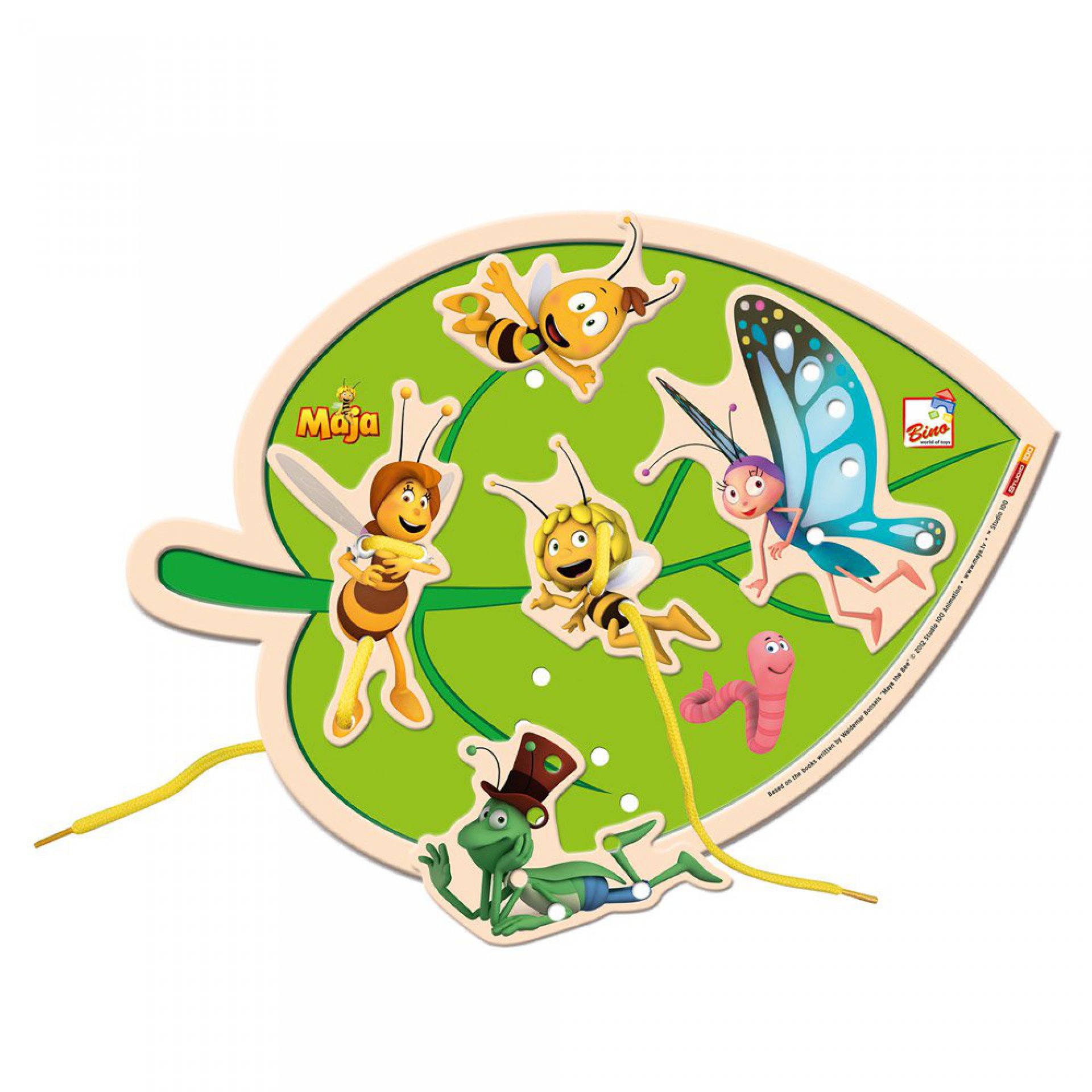 Šití list - Včelka Mája, materiál překližka, rozměr: 30x1x22,5 cm. Pro děti od 3 let.